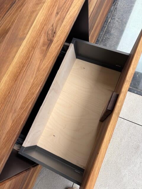 Ausstattung: 10mm Wildeiche-Deckplatte & Push-to-Open Schubladen (extra lang)